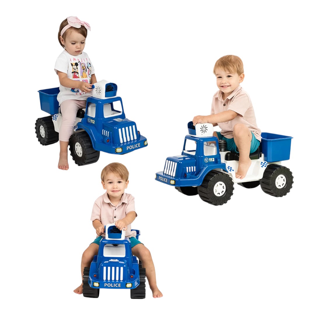 Дитяча поліцейська машина з бульбашками дарує справжні емоції — зверніть увагу на функцію запуску мильних бульбашок. Це не звичайна каталка, а повноцінна поліцейська машина для маленьких героїв, яка поєднує рухливі ігри з чарівним ефектом бульбашкового шоу. Дитина не лише катається, а й перетворюється на героя, залишаючи за собою веселий слід із мильних бульбашок! Це інноваційна дитяча каталка у вигляді поліцейської машини, що поєднує класичне катання з інтерактивною функцією запуску мильних бульбашок. Іграшка оснащена спеціальним резервуаром та механізмом, який під час руху створює барвистий потік бульбашок, перетворюючи звичайну прогулянку на справжню гру з ефектами. Корпус виконано з міцного та безпечного пластику, здатного витримувати активне використання як у приміщенні, так і на вулиці. Широке сидіння з високою спинкою забезпечує стабільну посадку дитини, а великі колеса з хорошим зчепленням гарантують плавний хід навіть по нерівній поверхні. Передня частина машинки оформлена у стилі справжнього службового транспорту: наклейки, решітка радіатора, фара-імітація проблискового маячка — усе це створює атмосферу реальної рятувальної місії. Дитина легко тримається за зручне кермо, самостійно відштовхується ніжками та керує напрямком руху. Головна родзинка — функція мильних бульбашок. Достатньо залити мильну рідину у спеціальний резервуар, увімкнути механізм — і машинка починає «випускати дим», ніби справжній пожежний автомобіль у дії.