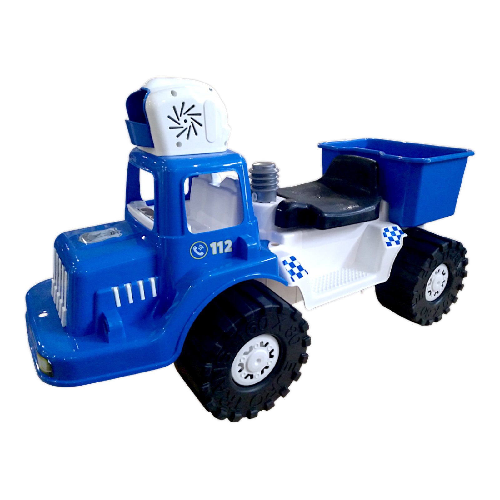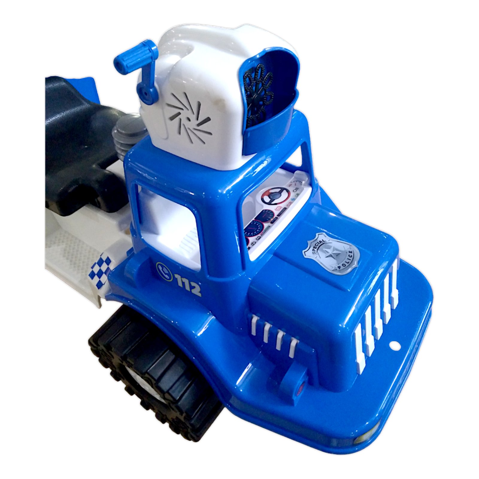 - Колір: синій з білим (стиль поліцейської машини)
